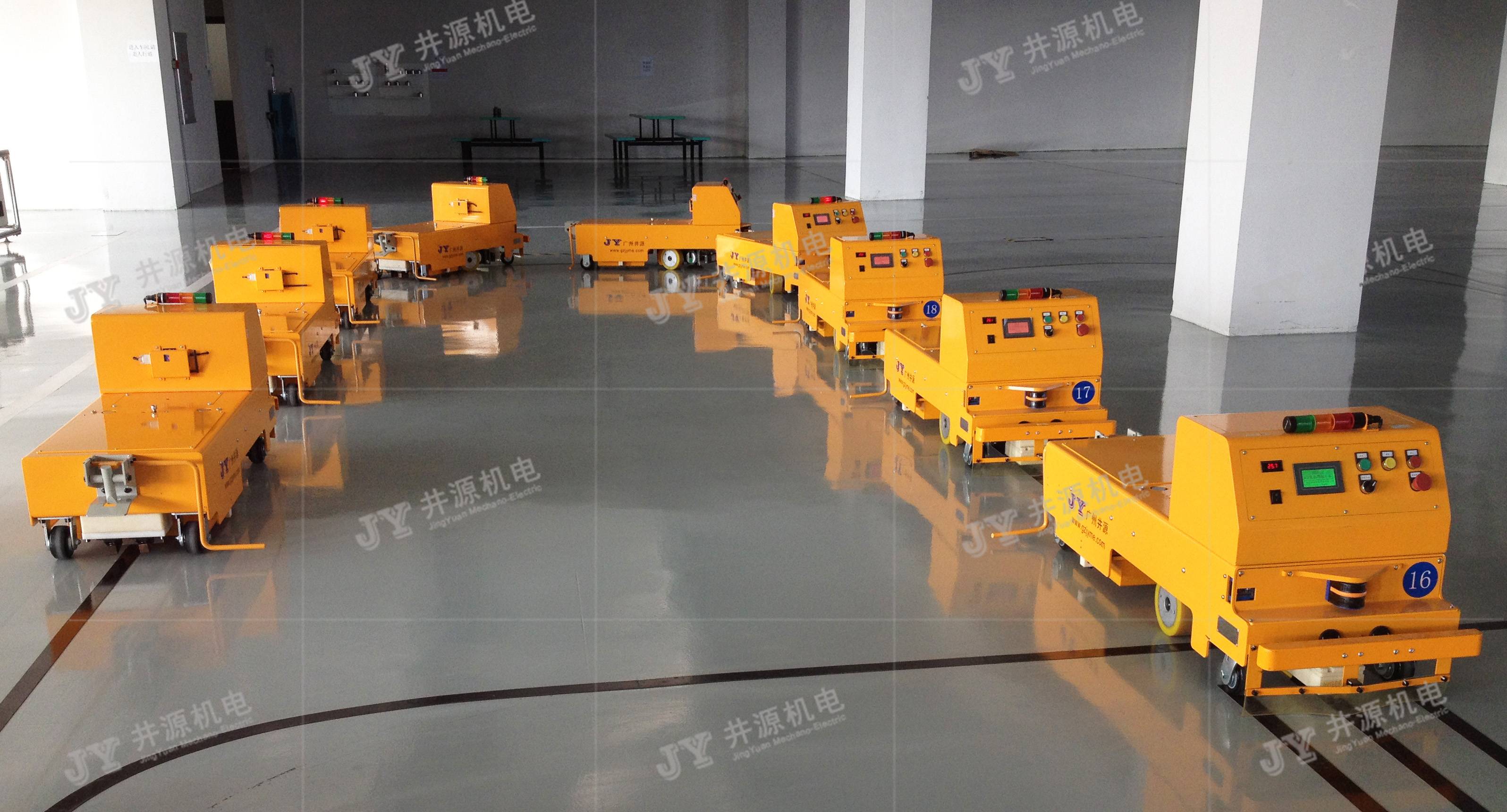 The project adopts Inoac's tail traction type AGVs, which are responsible for material transfer in the batching area of the interior A and B lines. The AGVs automatically hang off from the material carts and complete work such as fixed-point stopping or running, thus realizing intelligent management of the production line. In the early days, the well-sourced traction type AGV also had a mechanized appearance with a bright yellow color to ensure that the equipment was more visible in the factory, and the tape guidance mode was the most used navigation method in the early days. Now, after 10 years of metamorphosis, the mechanized appearance of Wellspring traction AGVs is softer, more functional, and the navigation mode is diversified, which can be applied to magnetic ribbon navigation, SLAM laser navigation, ribbon + 2D code navigation, etc., which is more in line with the current market's dual requirements for the function and shape of the equipment.