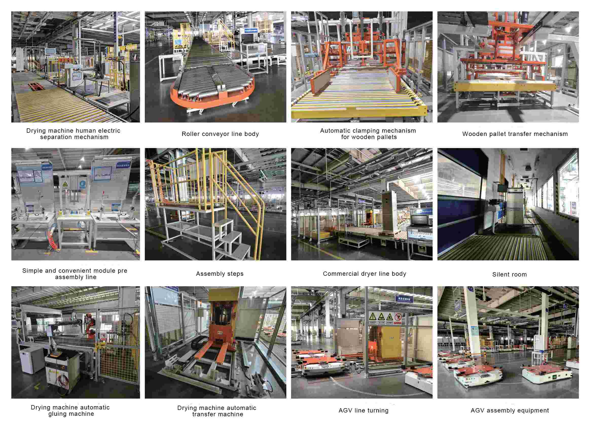 In this project, the commercial dryer intelligent final assembly production line is mainly used for the intelligent assembly production of multiple models of dryers. The plan is to use intelligent AGV as the driving force to complete the flexible, information-based, and intelligent production of different models of dryers, and to achieve automated transportation of production processes such as final assembly, testing, cleaning, and packaging. The assembly line package includes: final assembly, inspection, cleaning, packaging and transportation, intelligent balancing crane, simple and convenient module pre assembly line, testing equipment, auxiliary equipment, tooling tools, AGV assembly equipment, etc.