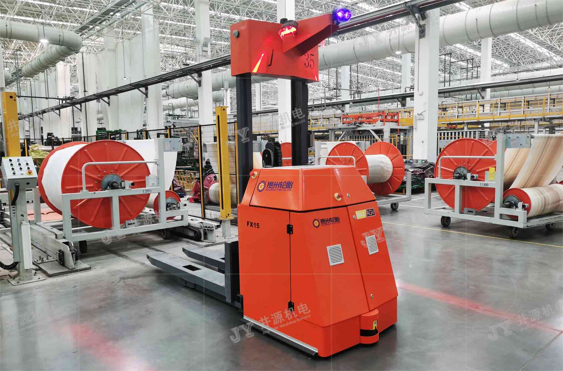 Flexibility: Jingyuan electromechanical AGV can be customized and adjusted according to the different needs of the tire industry, and the equipment has scalability and modular design, which can be flexibly changed according to the different production processes of tires and adapt to the transportation needs of tires of different specifications and models.