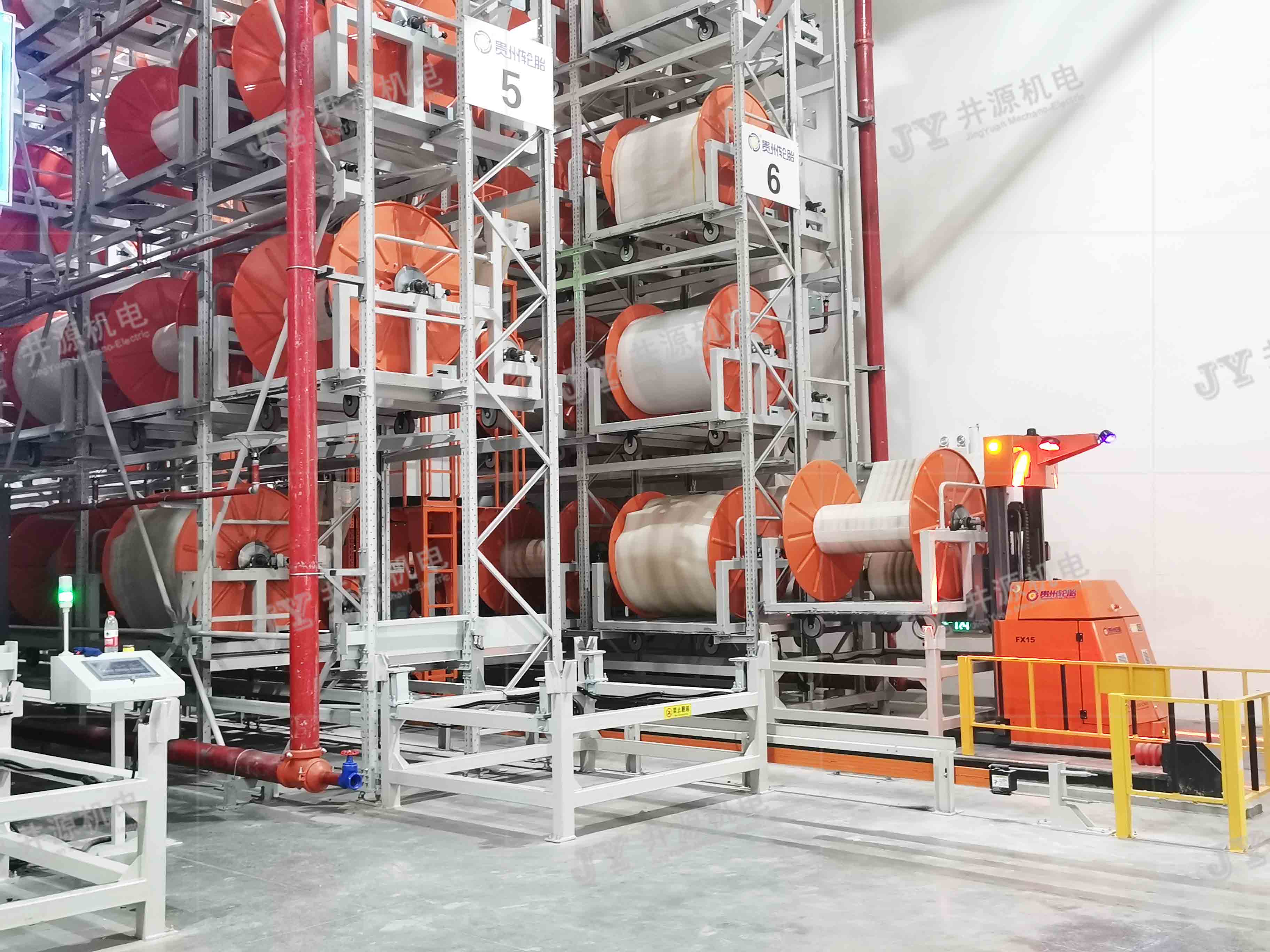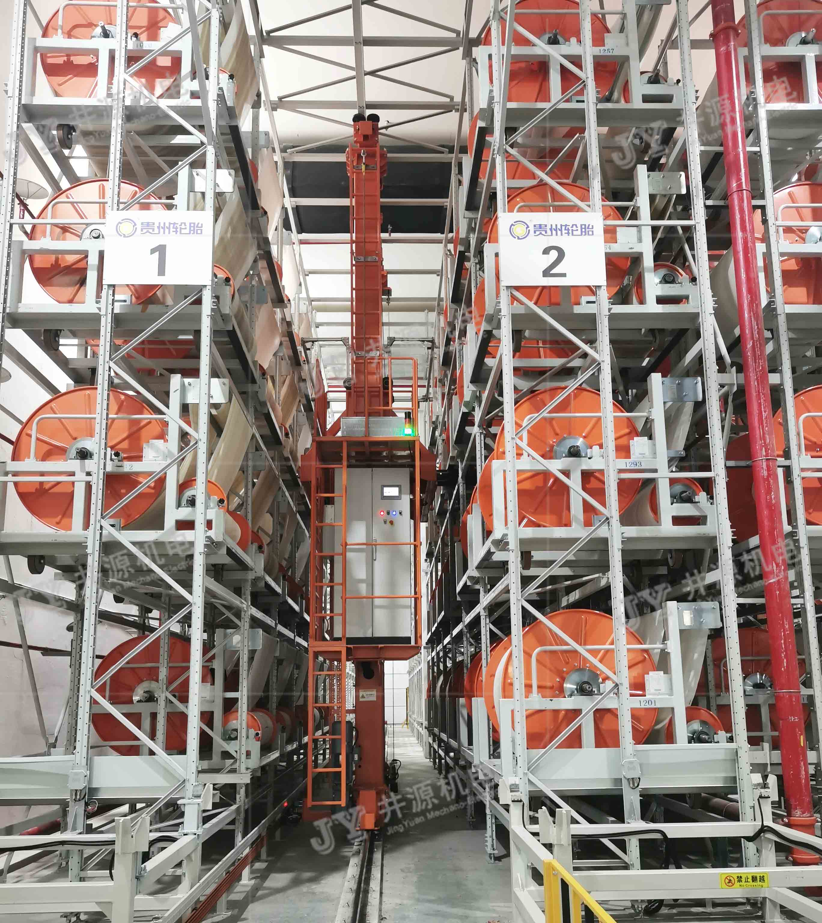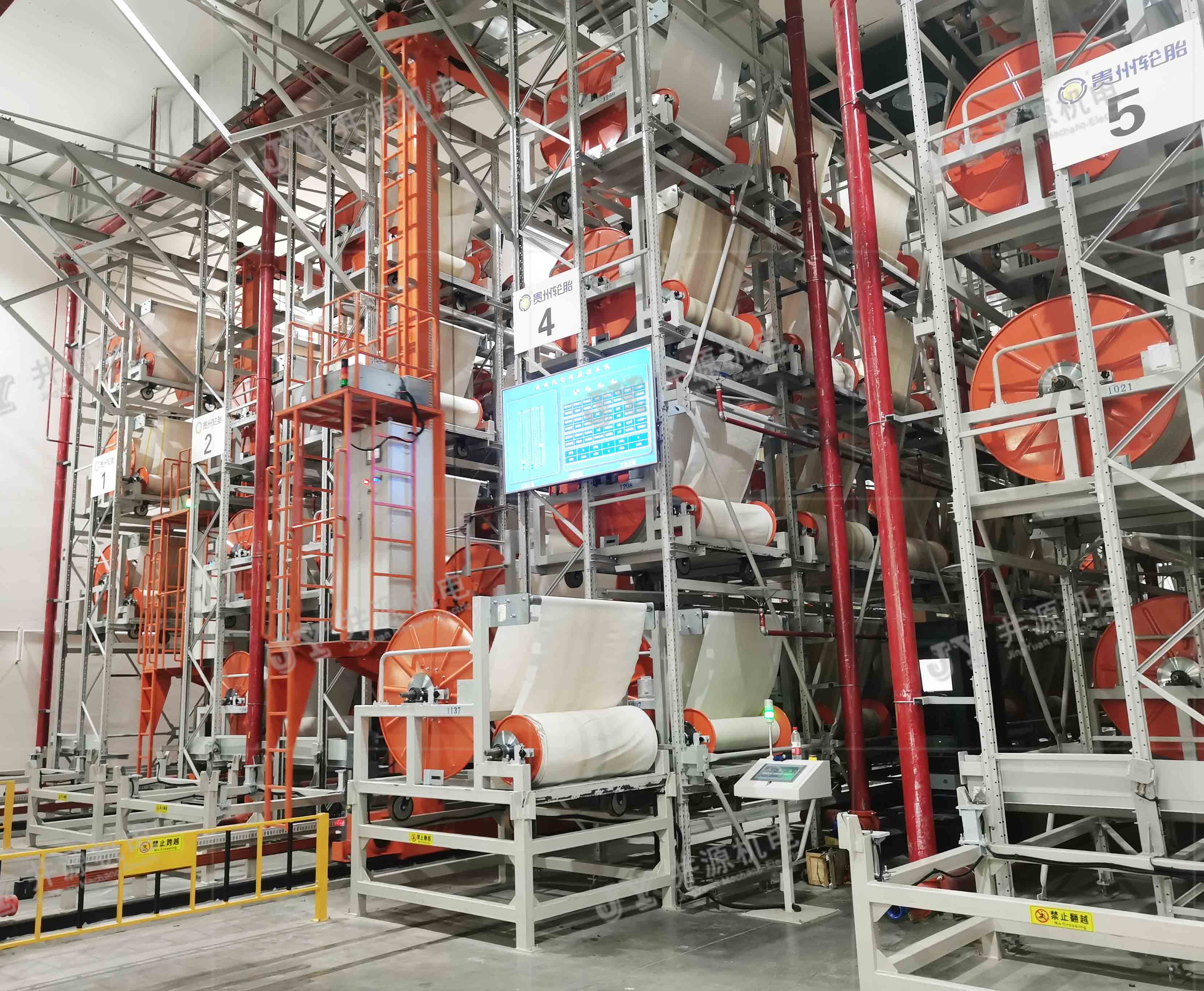 Automated three-dimensional warehouse is an efficient equipment for storing and managing items, mainly composed of a stacker crane, track system, control system, shelf system, and transmission equipment. It is mainly responsible for the storage of materials for the tire body, tire side, and inner lining layer. AGV is responsible for transporting materials to designated locations, and then the stacker crane completes the material storage and management process.