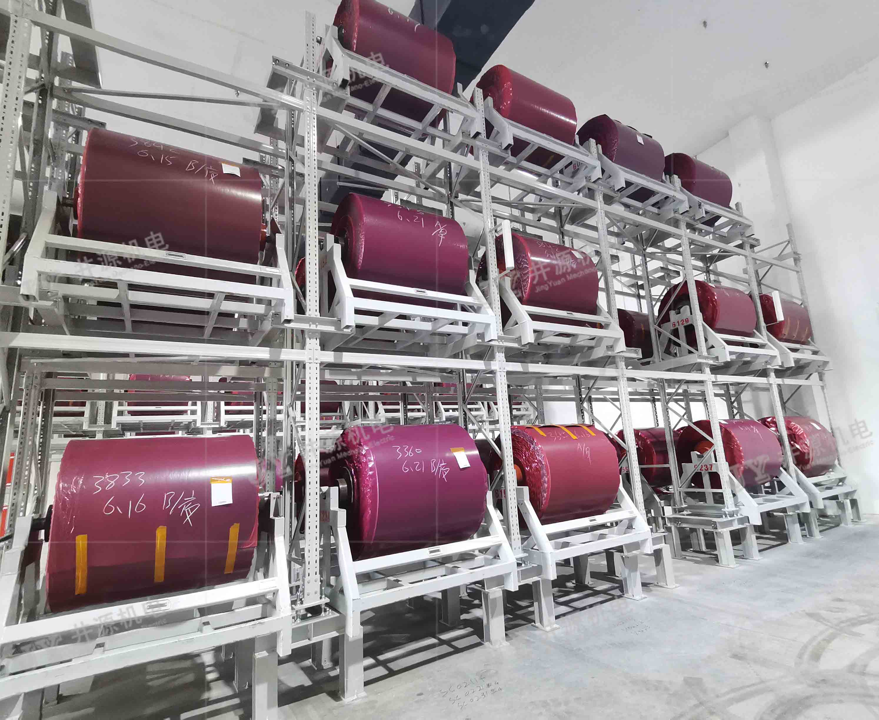 Shelf is one of the important tools for improving efficiency in modern warehouses, mainly responsible for the temporary storage and transfer needs of steel wire coils and shoulder pads. It adopts a two-layer shelf form, and AGV is responsible for transporting materials to designated locations.